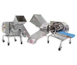 Es una cubicadora fabricada en acero inoxidable que produce una gran variedad de cortes: cubos, rebanadas, tiras y granulados.