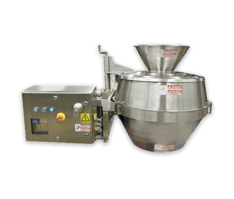 Zona de corte de 32 pulgadas de diámetro para promover una mayor capacidad y disminuir la acumulación de producto.Gran motor de 10 HP (7,5 kW).Tolva de alimentación abatible adjunta que ofrece accesibilidad para la higiene.
