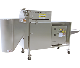Es un equipo fabricado en acero inoxidable, con un diseño que se adapta perfectamente a líneas de proceso preexistentes.Acepta productos firmes de hasta 4 pulgadas y productos compresibles de hasta 6 pulgadas.Se distingue por sus cortes en rebanada de máxima precisión.